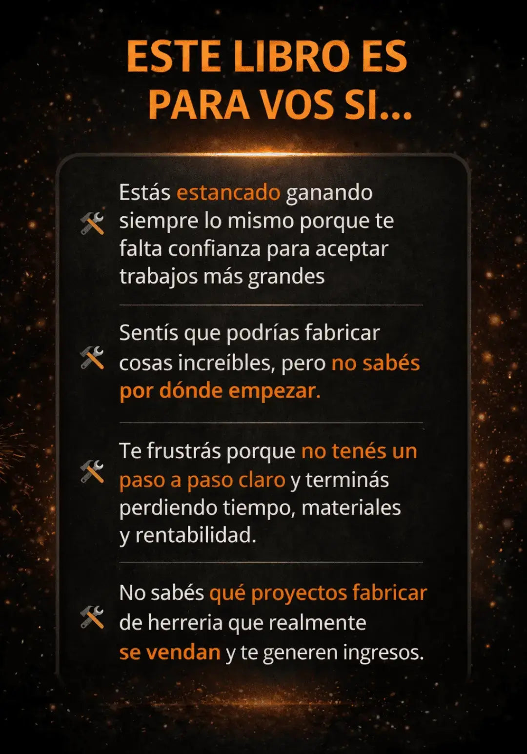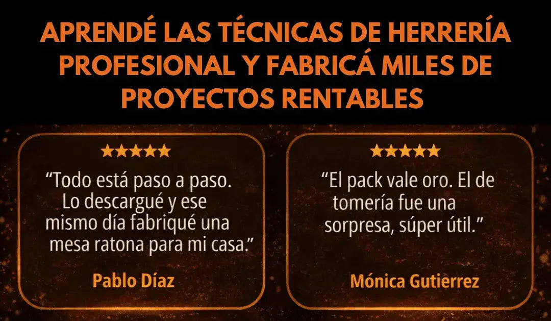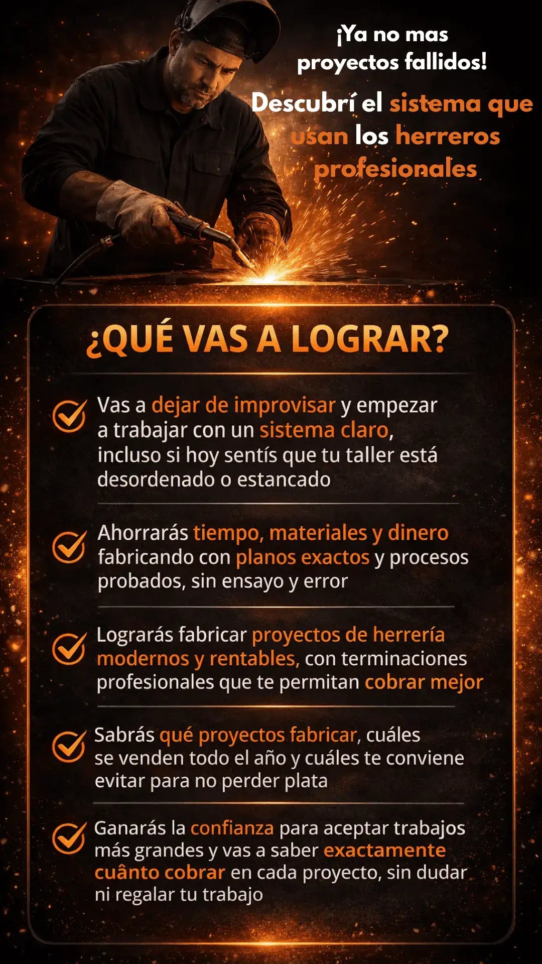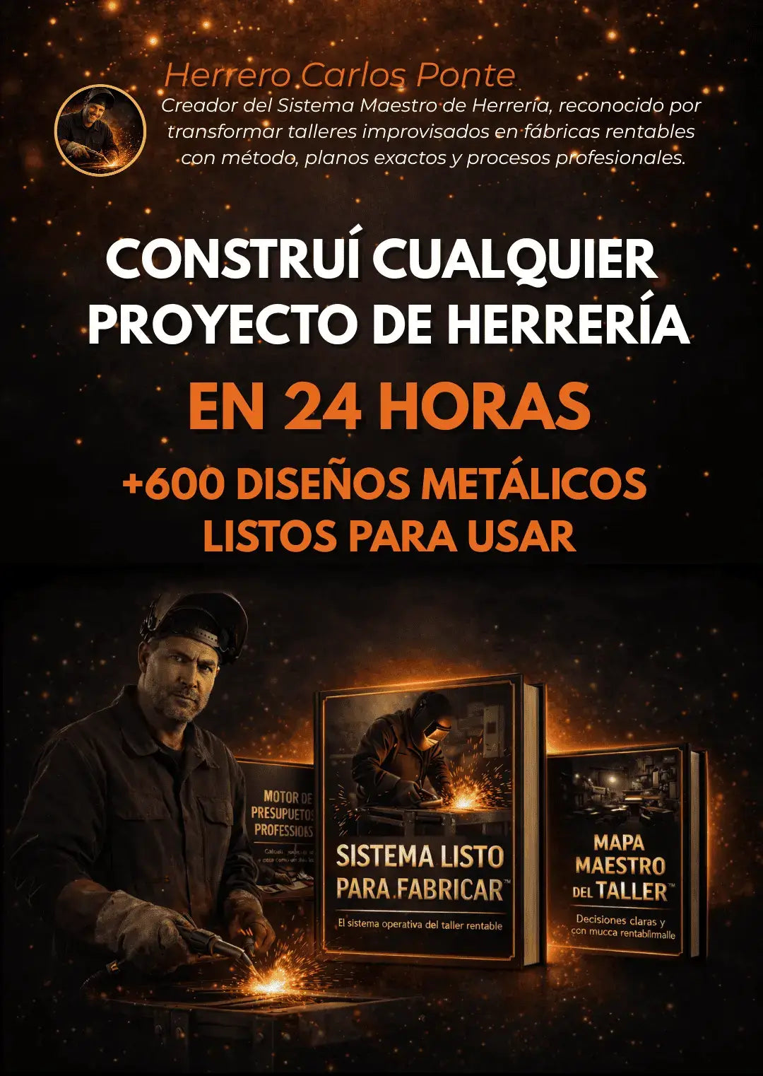 Además, accedés al Motor de Presupuestos Profesionales™, el Mapa Maestro del Taller™ y 8 bonus donde aprendés soldadura, herrería artística, tornería, carpintería metálica y proyectos de alto valor comercial.